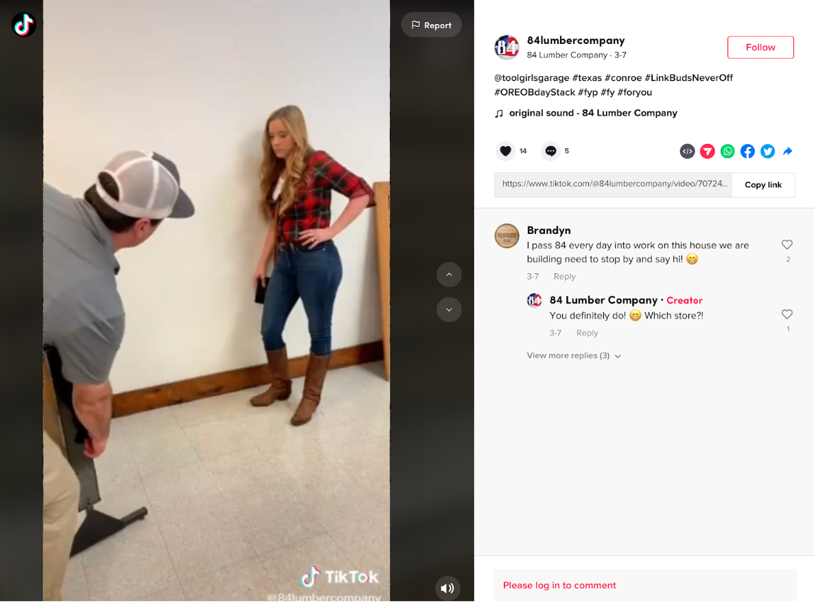 As a bonus, the video content created on TikTok can be used on Instagram, so 84 Lumber has a presence there, as well. They’ve done an impressive job of sharing industry stories, and we talked more with Amy about what kind of content and strategies work best.