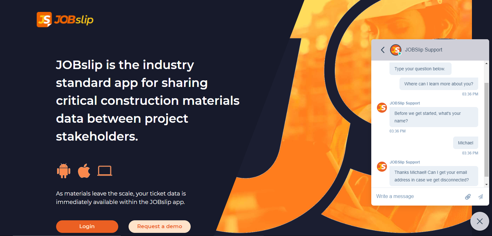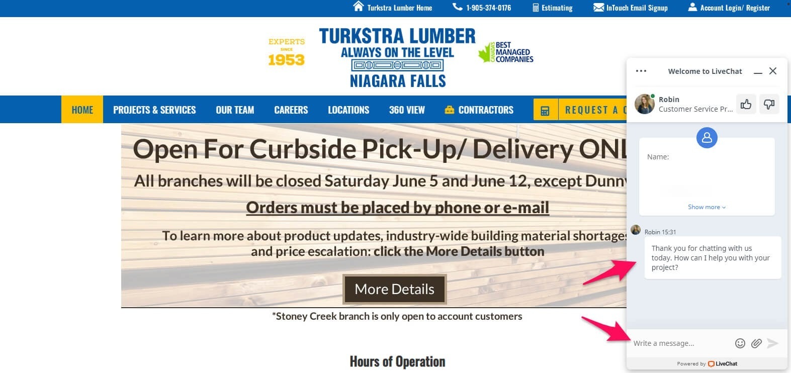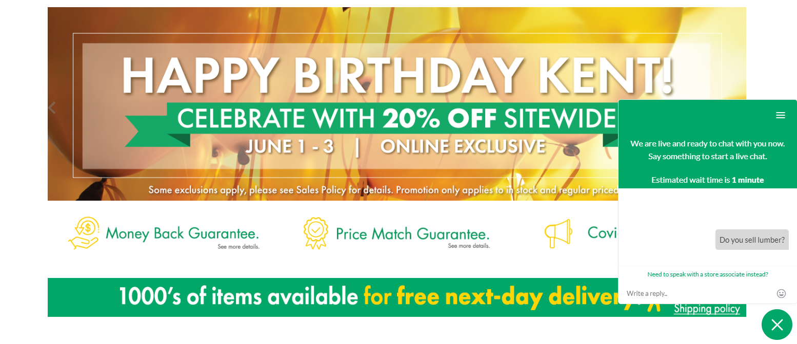 For example, the chatbot on this building materials website directly connects you with a live agent.
