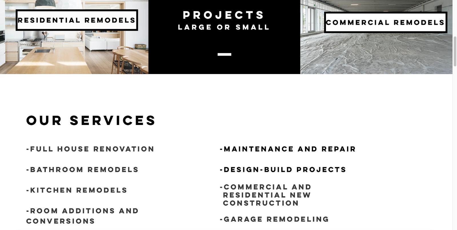 Create space for every part of your construction business. Avoid overwhelming online visitors with everything your construction company does by creating clear sections with specific calls to action. Understanding your target market will help you determine what to highlight and what to leave out.