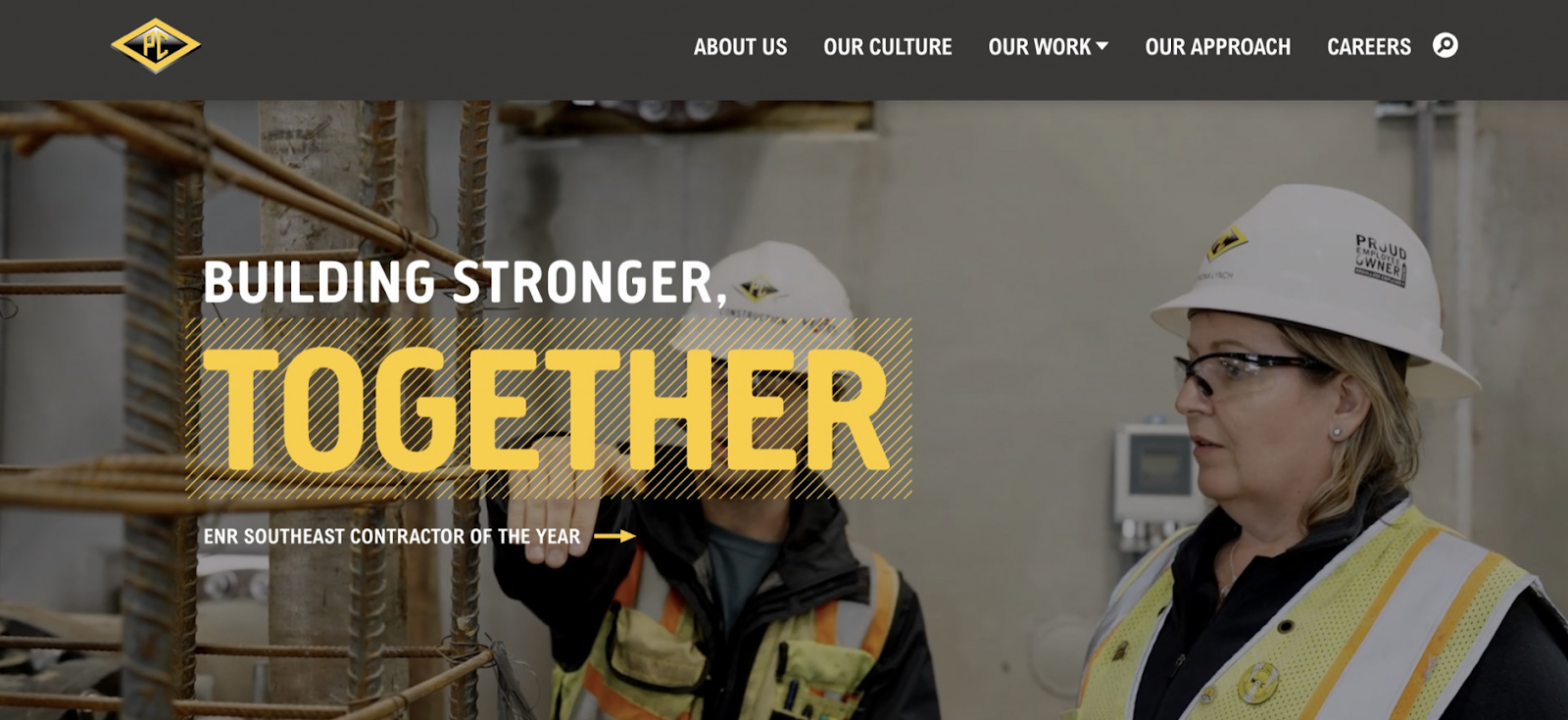 PC Construction chose a “people-first” design and presentation for their website. Images of their crews, happy customers and community events on the homepage create a sense of belonging and personalization within the brand. This powerful design choice instantly puts any viewer at ease and makes them feel like they will be treated as an individual and not simply another project.