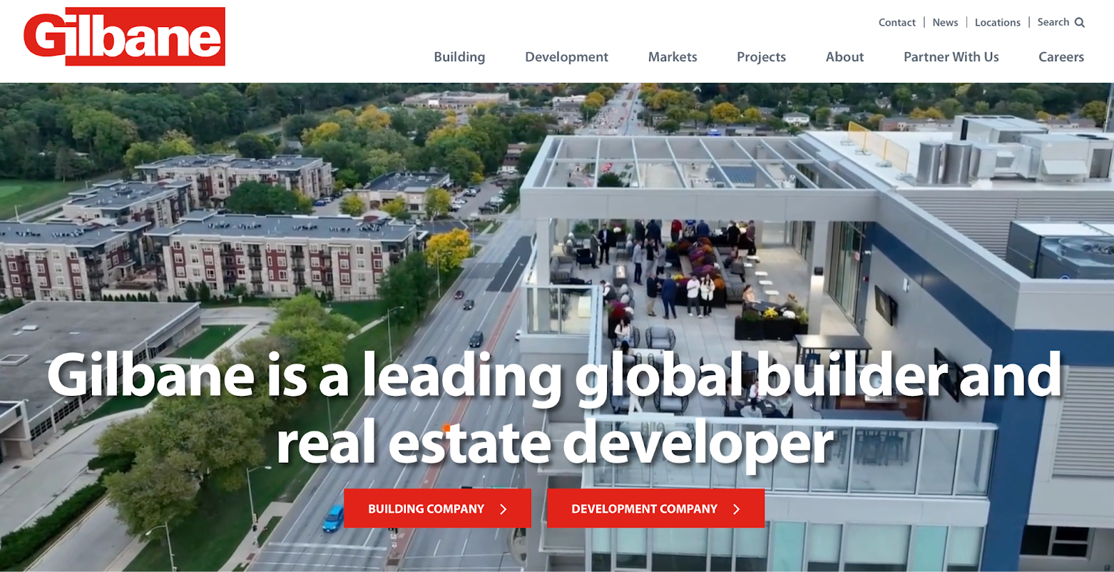 Space allotted to every area of the business. Gilbane is a global company and its website perfectly allocates space for the company’s various departments and endeavors. This choice makes online visitors feel like there are many ways to get involved and the site makes it easy to take action and learn more.