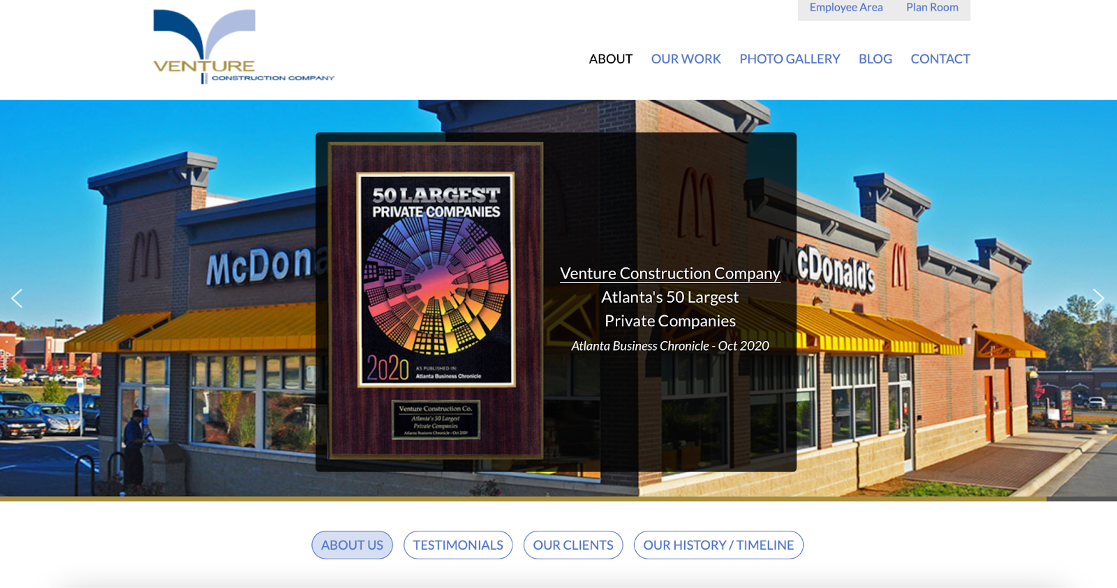 Their specialty is clear. Venture makes it clear that they do two project types very well: restaurants and retail stores. Online visitors don’t have to wonder whether or not their project will be done well. If it’s a restaurant or retail store, they’re in the right place.