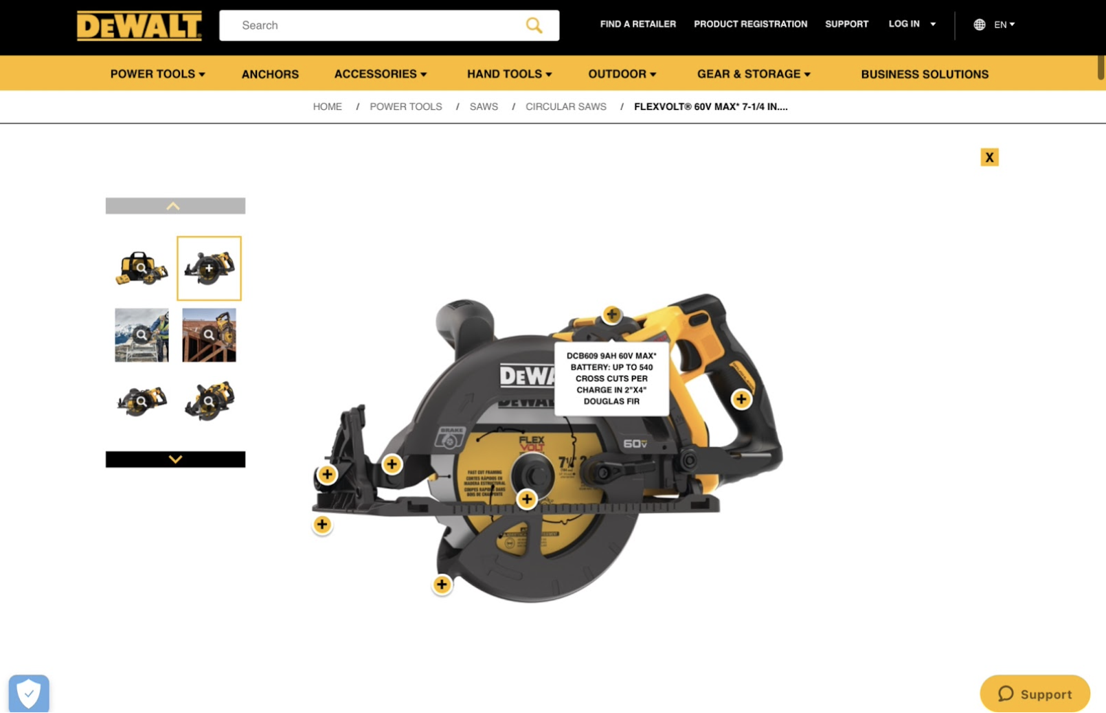 3D, augmented reality and virtual photography allow leads to get an in-depth understanding of your product without going to the store. DeWalt does a great job of adding interactive photos on each page to showcase the top benefits of the company’s products.