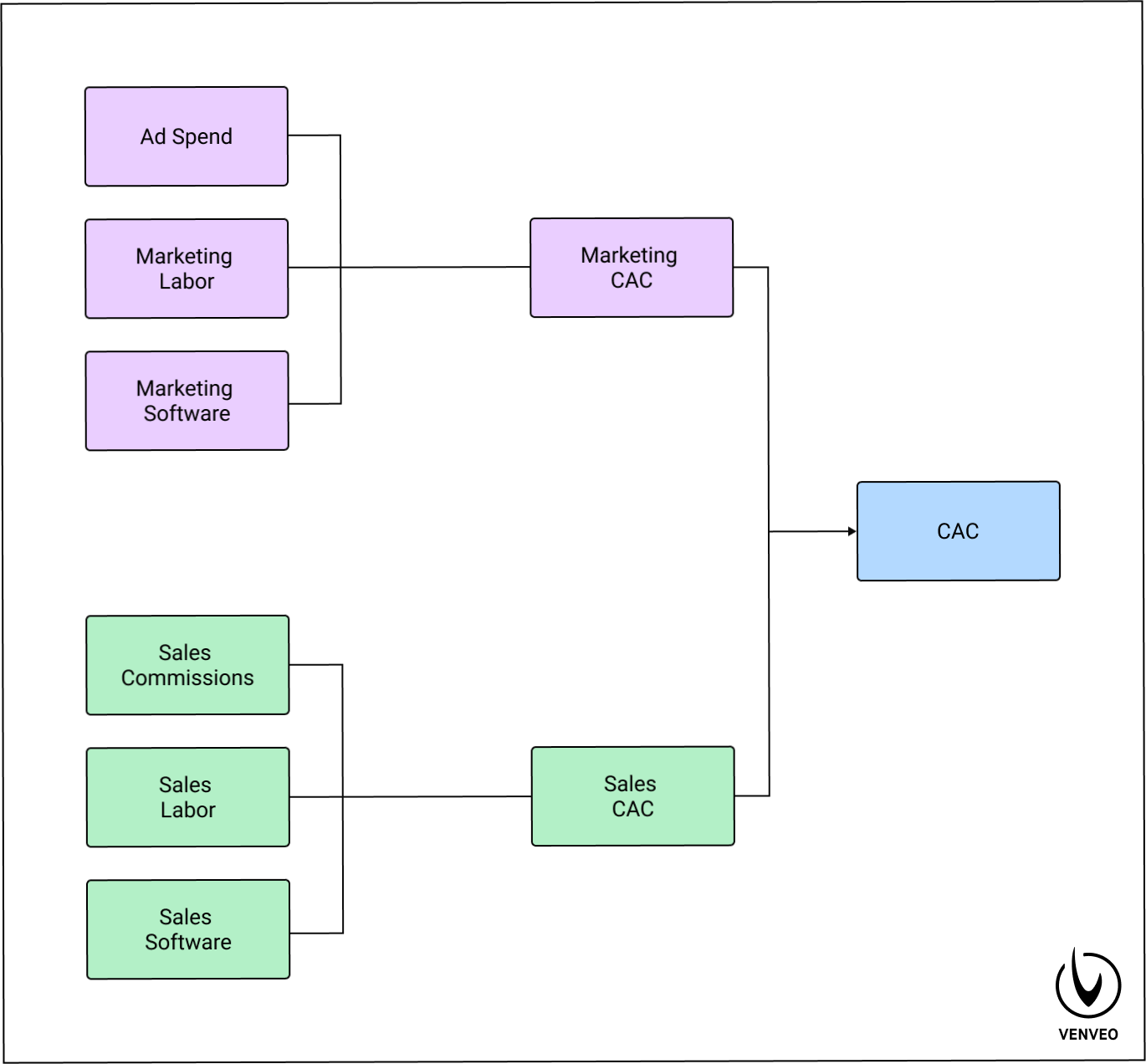 Customer Acquisition Costs (CAC) isn't just your ad spend. It also includes everything you pay for marketing and sales (ad spend, labor, software, etc.).