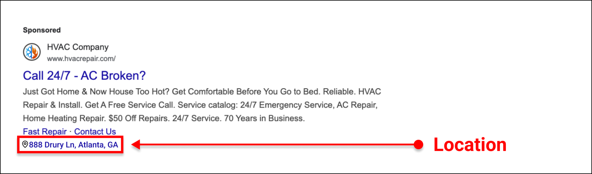 Someone searching “AC repair near me” will feel a lot more confident clicking on an ad that shows a nearby location instead of guessing whether you're actually in the area.