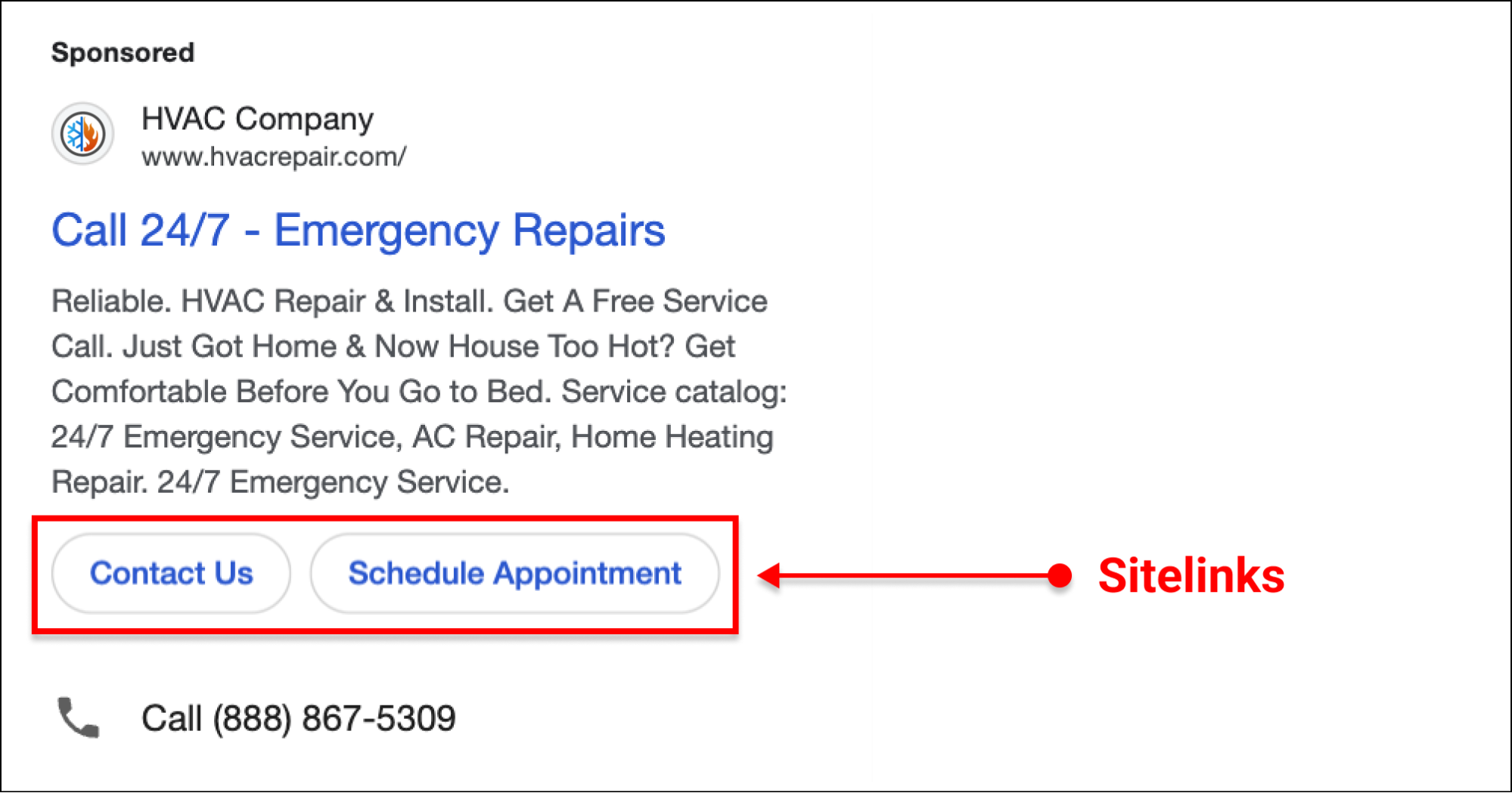 This adds a phone number to your ad so people can call you directly from the search results. On mobile, this becomes a tap-to-call button.