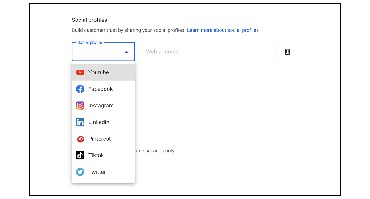 You can add links to your social profiles also. We recommend adding your Facebook, Instagram, and LinkedIn at minimum. Associating your Google Business Profile with your other social profiles helps Google understand more about your business and its credibility.