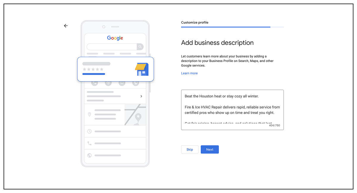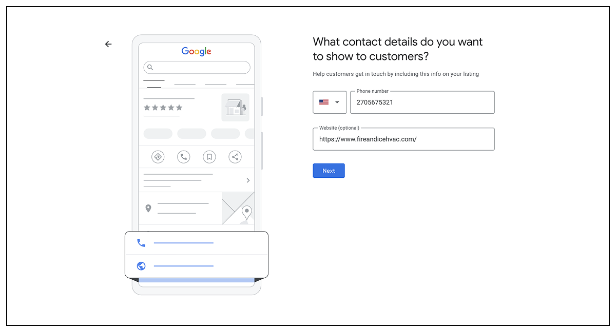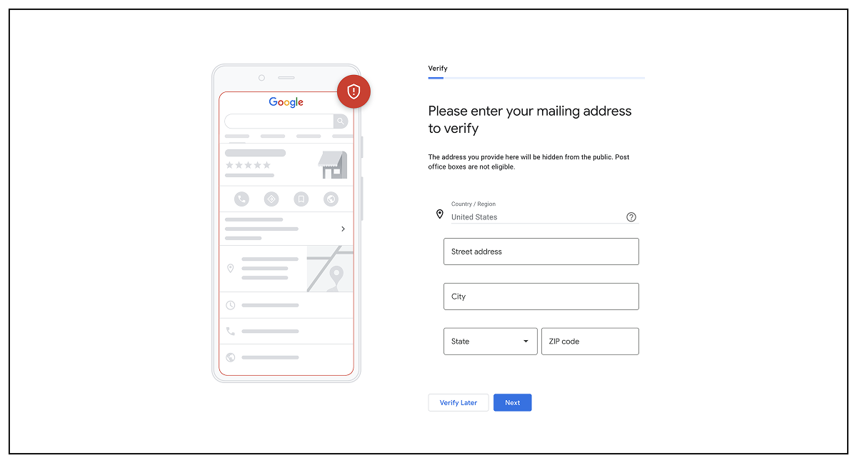 Google’s going to ask you to verify your business next. Enter the information they request to start that process.