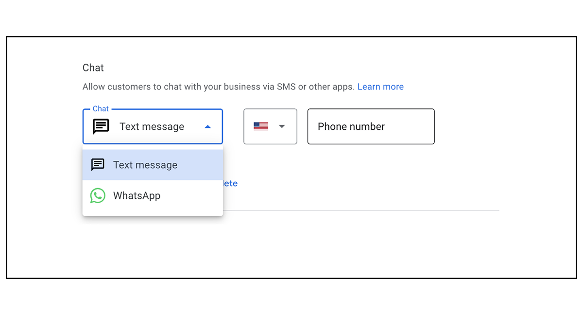 Most people would prefer to text a business rather than call them. You can give people that option by adding a text-enabled phone number in the Chat options.
