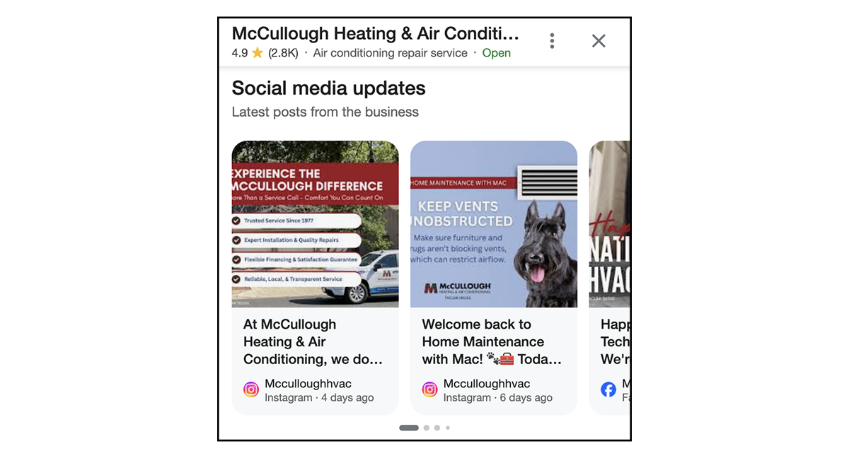 Google may also display post updates you’ve made across social channels right there on Google. Giving searchers more opportunities to see that you’re a legitimate business and interact with your company.