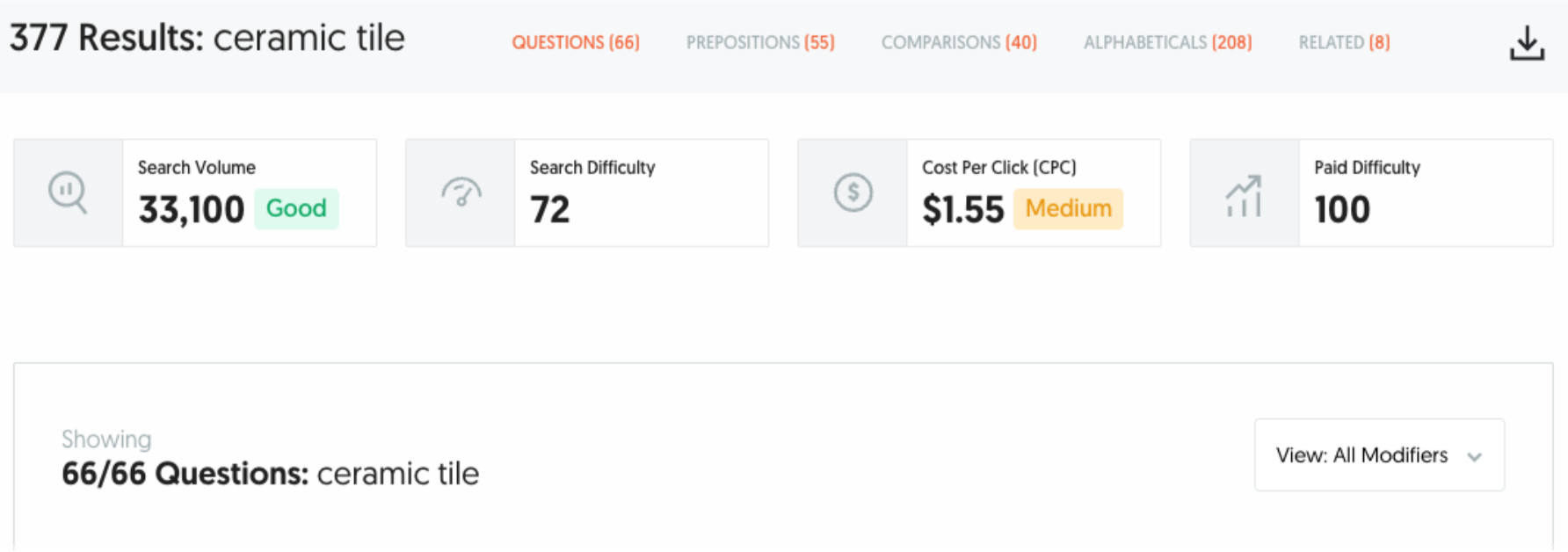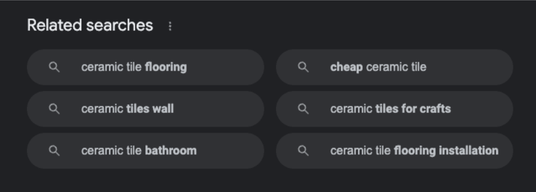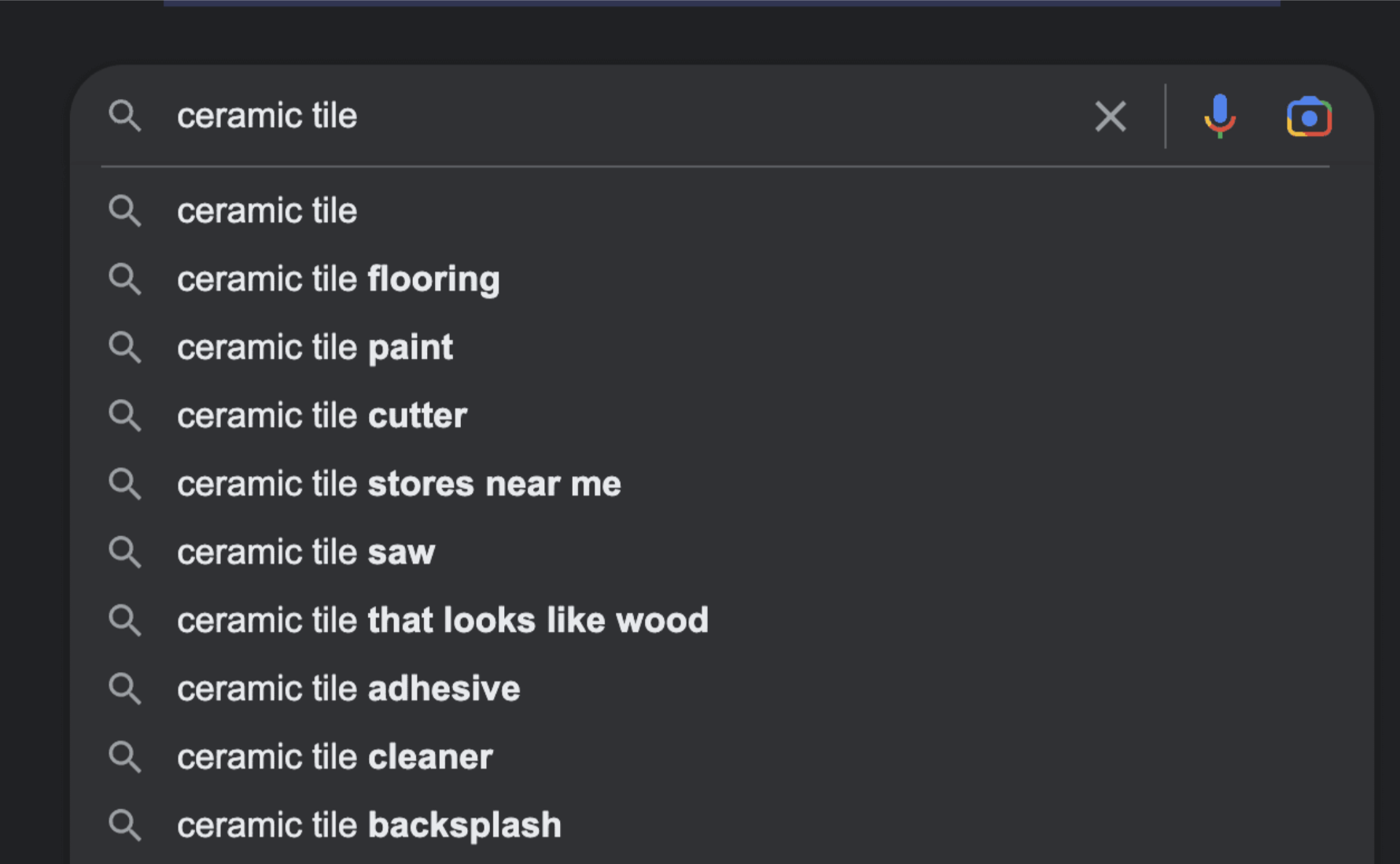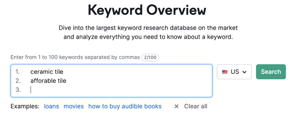 A search query is the word or condensed phrase your audience is actually typing into the search bar (or asking Siri or ChatGPT about). Think “what is ceramic tile,” “how do I install ceramic tile myself,” “what’s the best color combination of ceramic tile,” etc. A keyword is the one or two words that all of those searches have in common — in this case, “ceramic tile.” A keyword isn’t the full search term your audience is searching for. It’s the exact word or phrase you want your website to rank in search engines for, no matter what words are before or after it.
