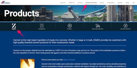 Look how effortless it is to find products and services on the Cemex website.