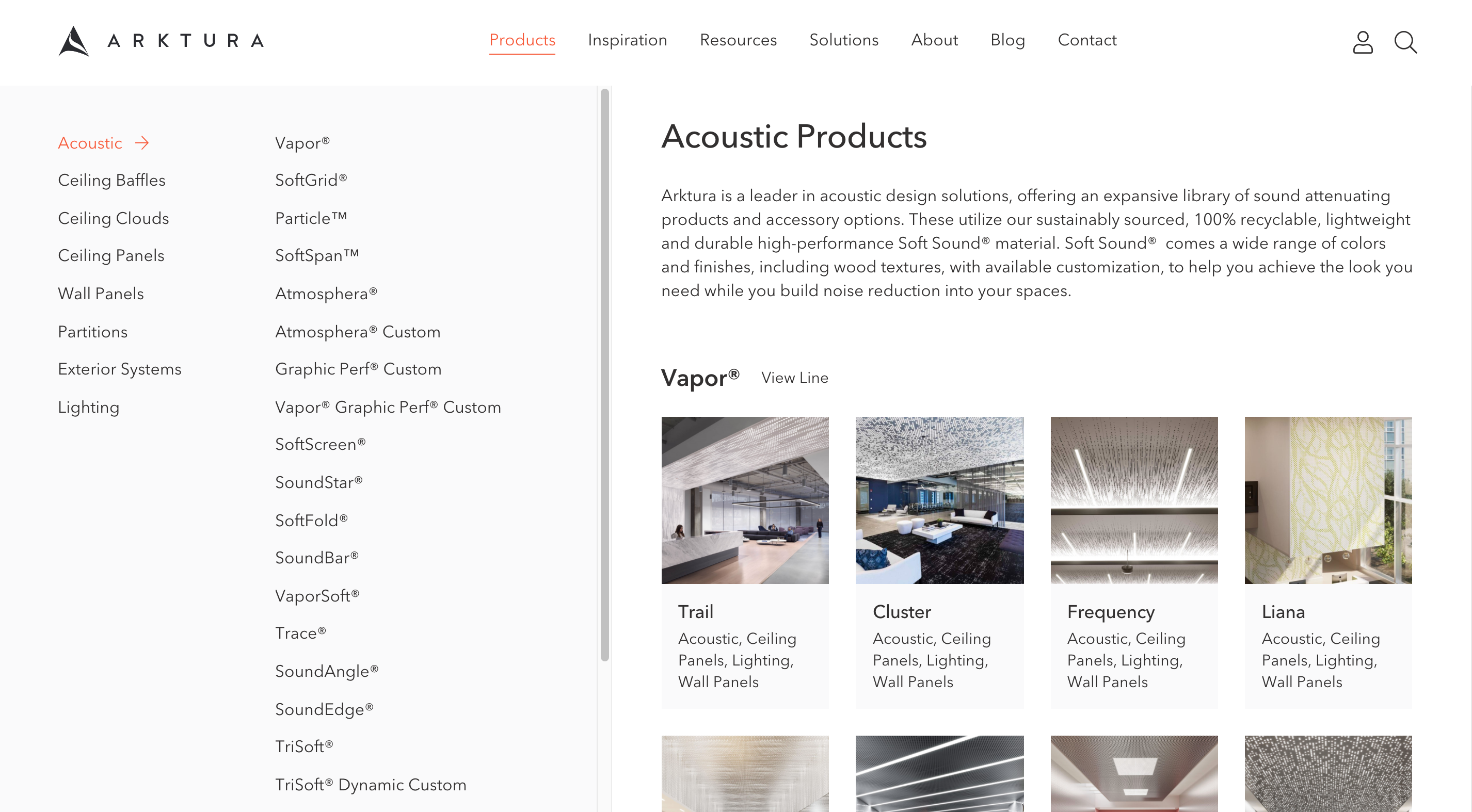 Another site that Mitch thinks highly of is Arktura's website. Arktura is a designer and manufacturer of ceilings, walls, partitions and facades.