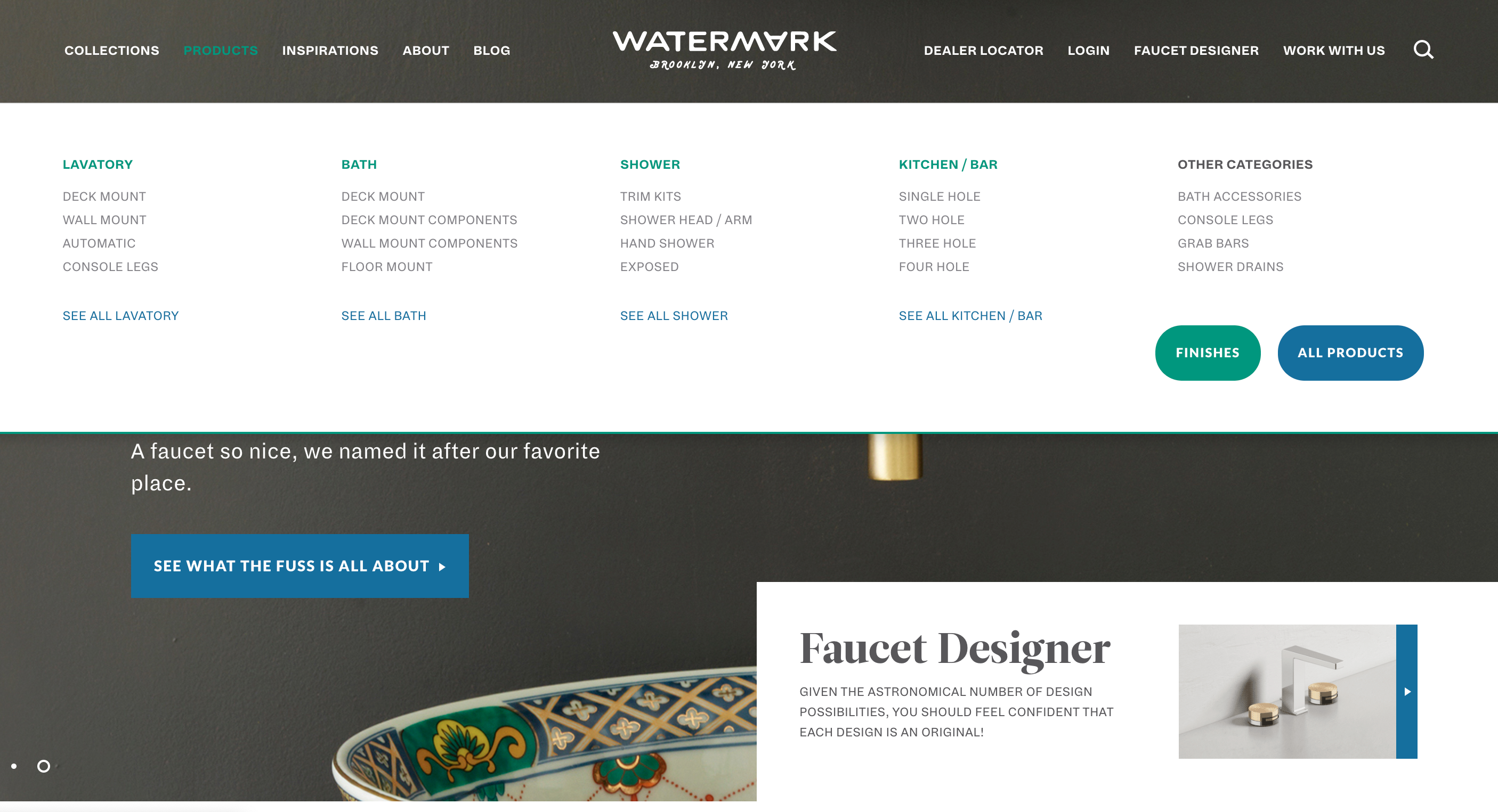 “They have a ton of products, more than you would expect for a really high-end manufacturer,” continues Mitch. “And the collections are organized by aesthetic, and then products are organized by bathroom, shower, kitchen, bar, etc. You have these categories where you can start to drill down specifics. For example: If you’ve got a shower, you can start to filter it based off of your selections and what your requirements are for the project. And I think that's really valuable as well.”