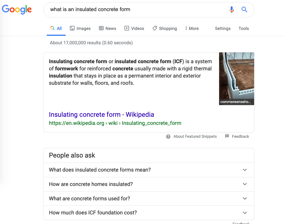 The good news is zero-click searches are still a wide-open market for the building materials space. If you have a complex product or an alternative material, targeting zero-click searches is an excellent place to provide really simple answers for the questions.