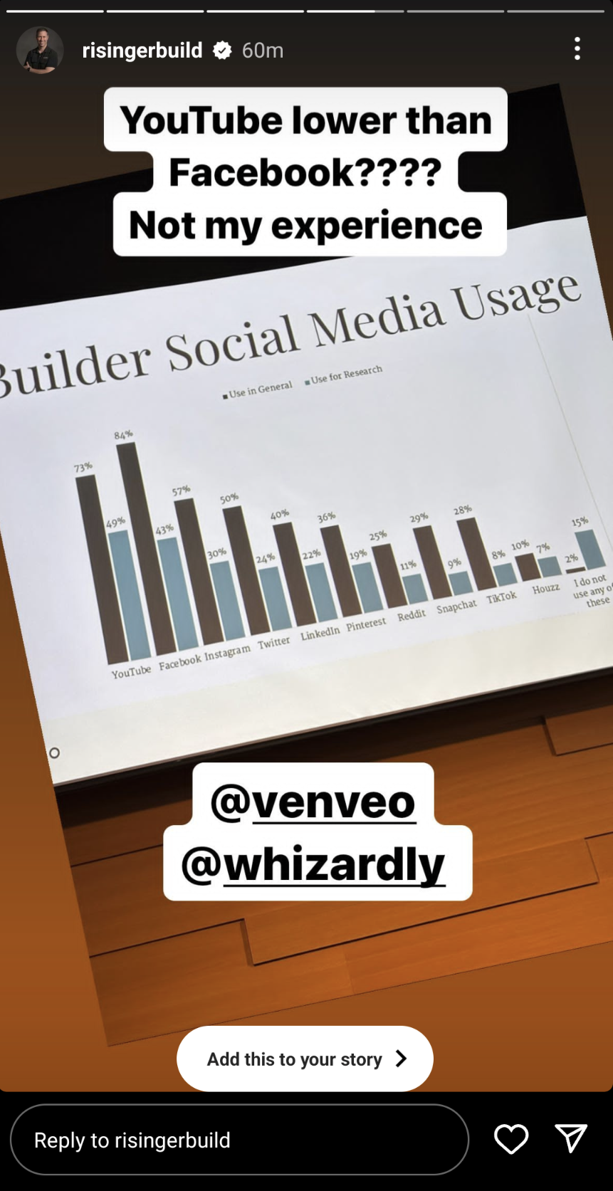 Beth, acknowledging Matt's insight, proposed that the term "social media" may be causing some confusion and bias in the data. While everyone recognizes Facebook as a social media platform, YouTube is often overlooked in this category. This may have resulted in YouTube's lower ranking in the survey. She also highlighted the importance of "intent channels" in reaching builders, arguing that YouTube serves this purpose more effectively than Facebook.