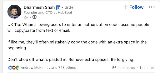It’s important to remember that LinkedIn isn’t just about your work experience, but also about the conversations you’re having. Dharmesh Shah, the founder and CTO of HubSpot, is a great example of how to do LinkedIn right.