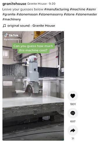 You’ll note that in the building materials communities on TikTok, there aren’t many dance trends. “Focus on what your business actually does. If your business does not have a dance team, don't do a dance,” emphasizes Ashley.