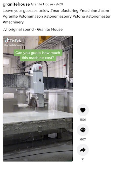 Ashley emphasizes that building materials brands should only spend time on TikTok if they have the resources to create videos. But if you don’t have access to a manufacturing facility or “boots on the ground to take some of those images and that footage, then I'd say you might have an issue in actually being able to share those components and those pieces of your business,” she says.